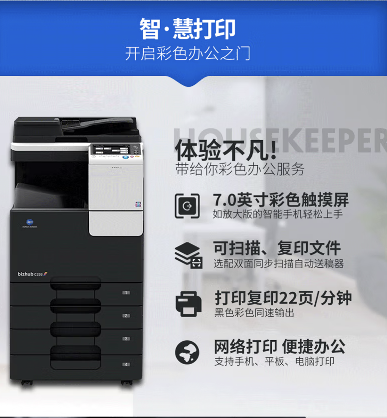 柯尼卡美能达 C226 多功能一体机 A3A4彩色激光复合机 大型商务办公多功能打印复印扫描一体机 C226+自动双面输稿器(自动双面打印复印扫描)