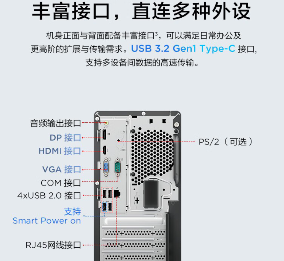 联想/LENOVO M460 台式计算机 i5-12400 8G 512G固态23.8寸显示器