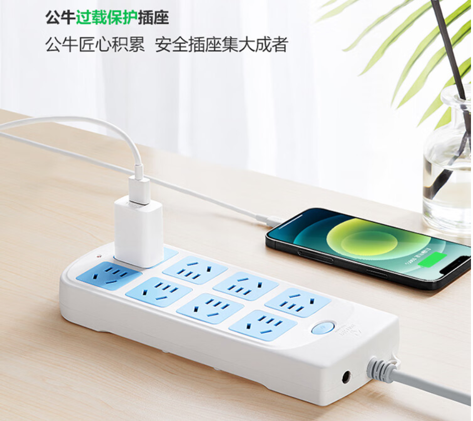 公牛 GN-604 插座超功率保护新国标插座8位总控全长5米