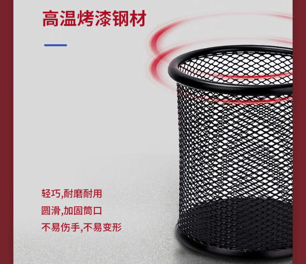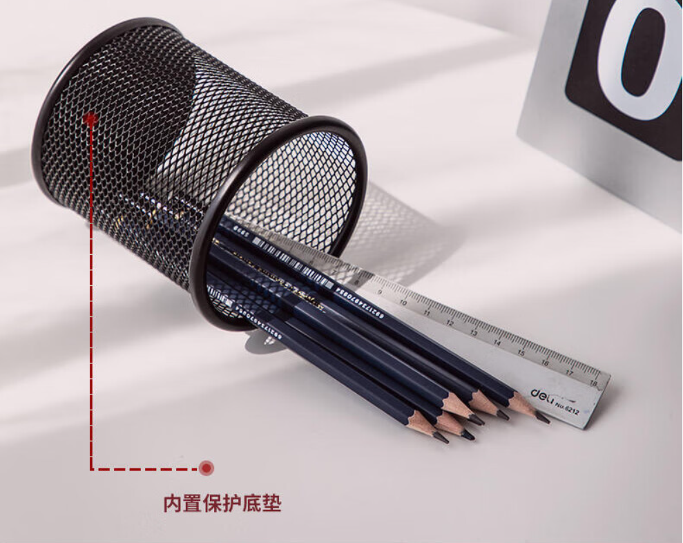 得力/deli 9172 笔筒 圆形金属网格笔筒