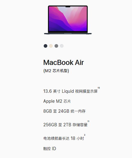 苹果/APPLE MacBookAir M2 便携式计算机 M2处理器笔记本电脑