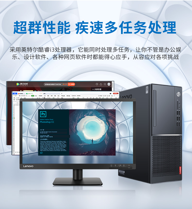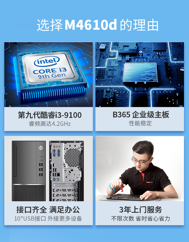 联想 Lenovo 扬天M4610d 英特尔酷睿九代i3四核 网课家用商务办公台式电脑整机 21.5英寸全高清屏