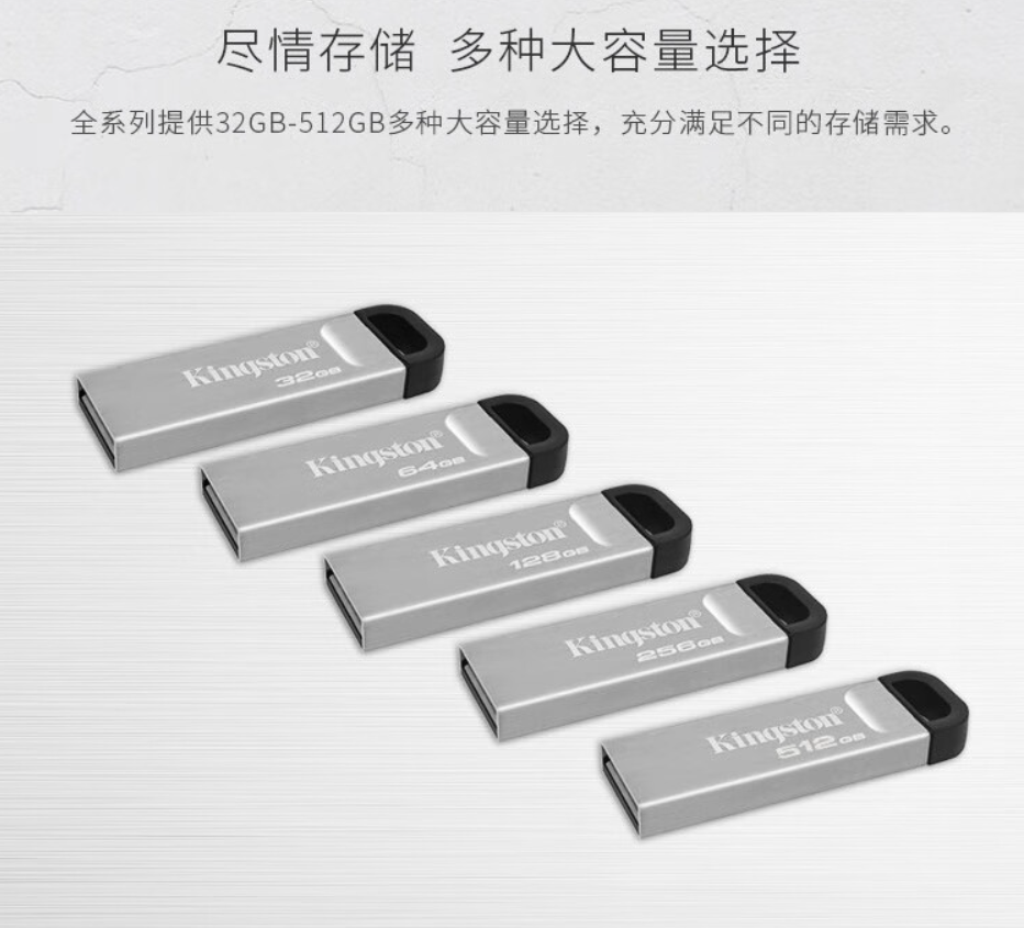 金士顿/Kingston 128G U盘/存储卡128GB USB 3.2 Gen 1 U盘 DTKN 大容量U盘 金属外壳