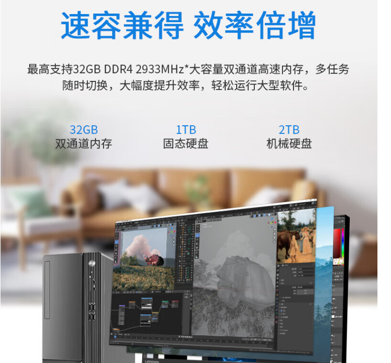 联想/LENOVO M460 台式计算机 i3-12100 8G内存 512固态 集显