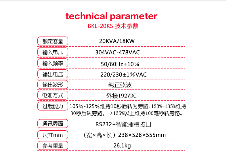 北科 BKL-20KVA 不间断电源(UPS)主机UPS不间断电源
