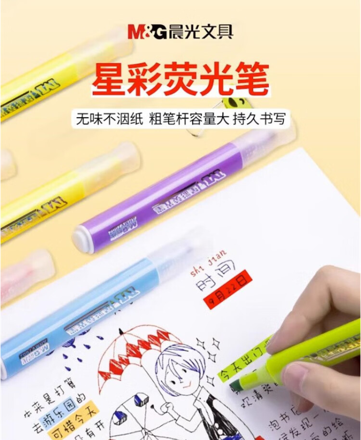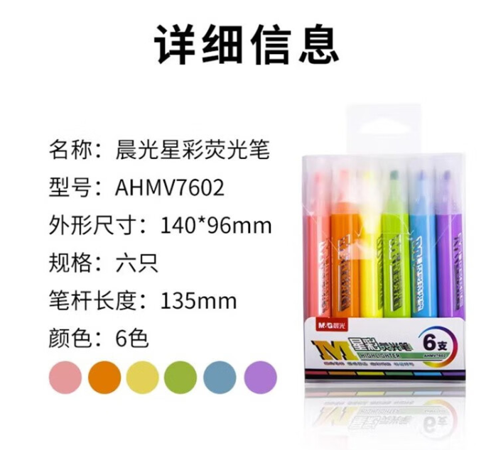 晨光/M&G V7602 书写用笔类用具6色荧光标记笔粗头