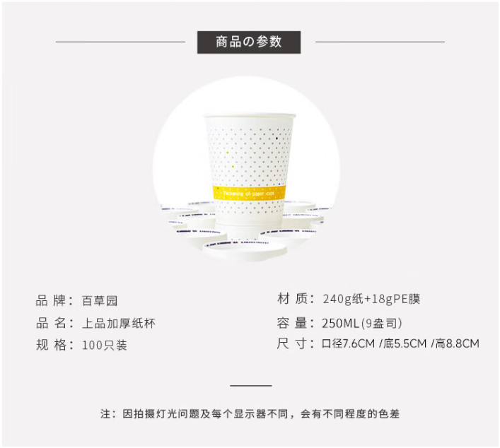百草园/bicoy 1978433 一次性杯子9盎司上品办公室咖啡水杯
