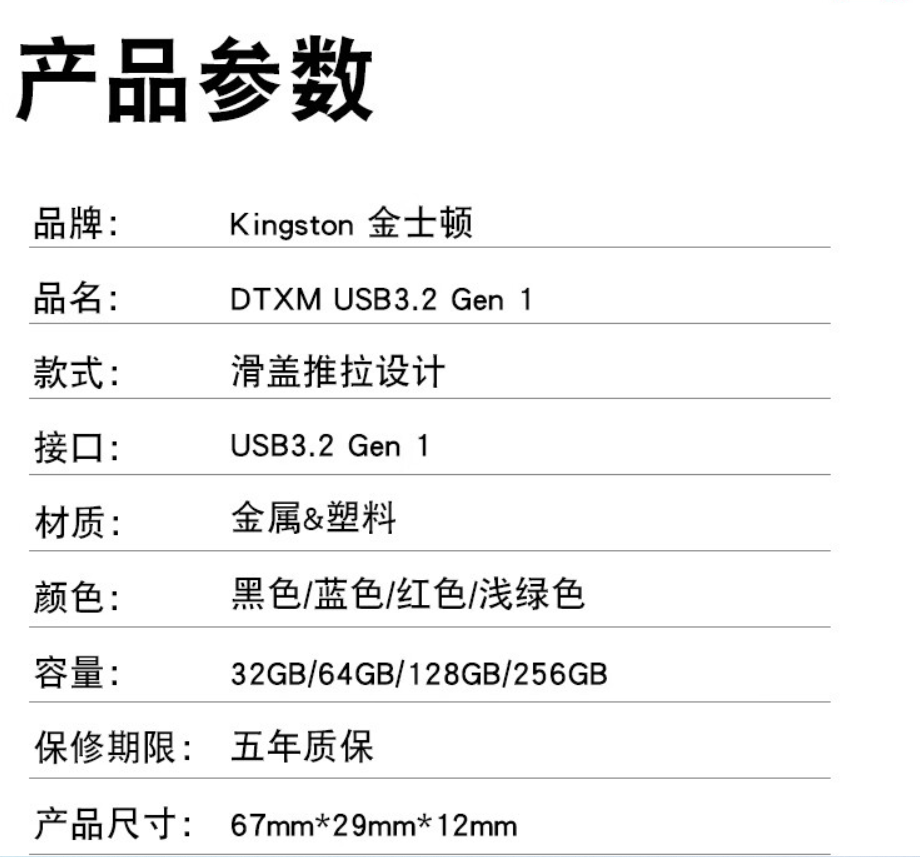 金士顿/Kingston 256G U盘/存储卡高速版3.0文件可加密码防复制保护商务办公保密