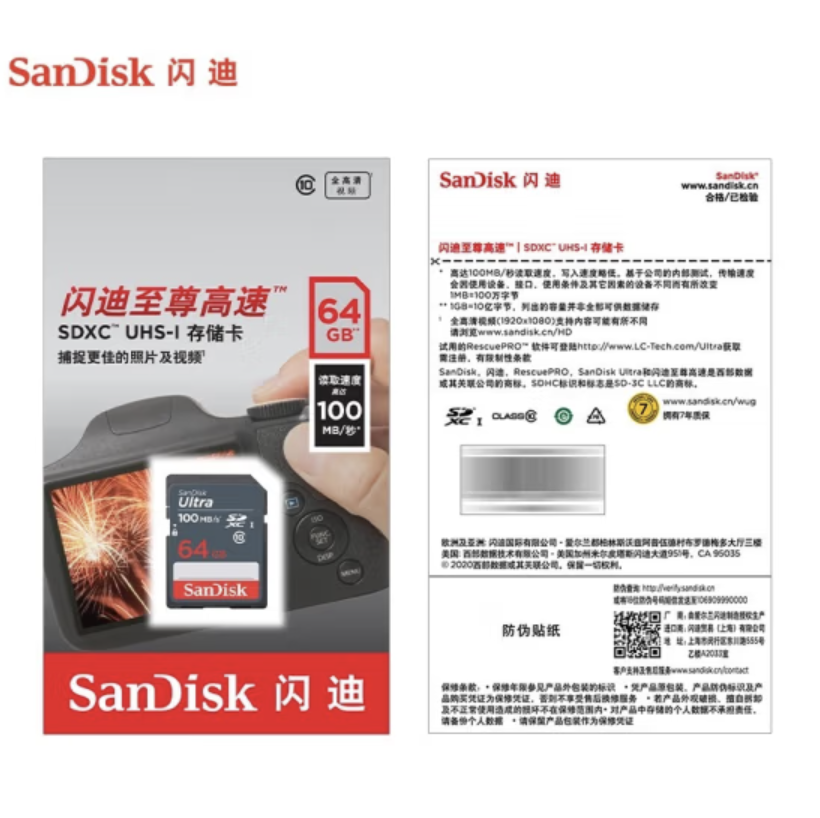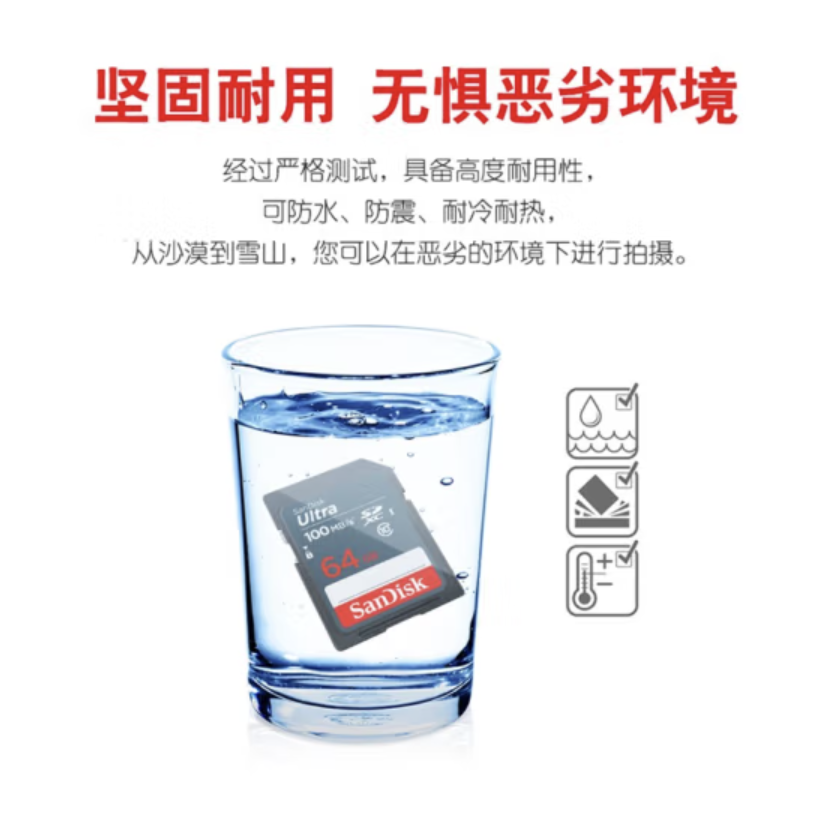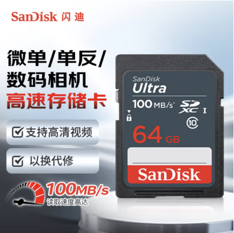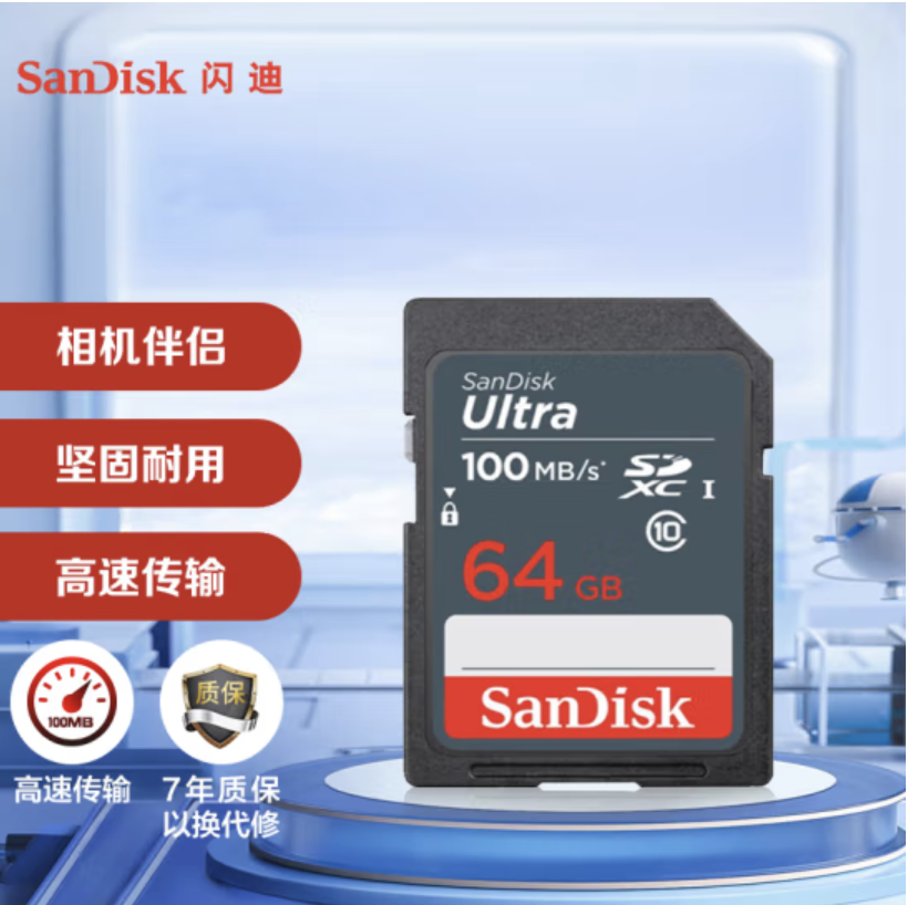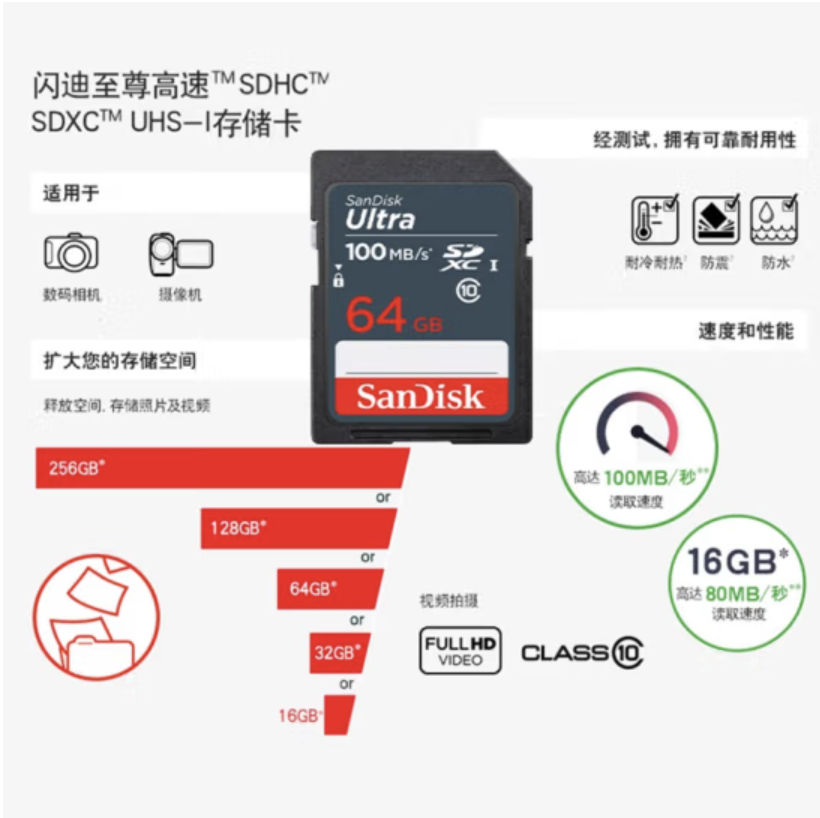 闪迪/SanDisk C10 U盘/存储卡 64GB SD内存卡 至尊高速存储卡 读速100MB/s 数码相机 摄像机存储卡 支持高清视频 坚固耐用